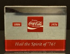 Coca-Cola 90th Anniversary Spirit of ’76 Glass Mirrored Paperweight 4" Rectangle