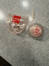 Vintage Coca-Cola Pins And Ash Tray And Small Bottle Keychain.