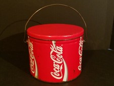 Vintage RARE Mid-Century Red White Grey Coca Cola Round Tin With Handle