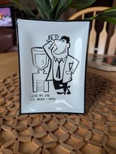 MCM Ceramic Tray 1960s Curve Clear Black Glass I Love My Job Vintage