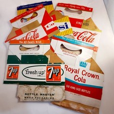 5 vintage cardboard drink cartons 7UP, Coca Cola, Pepsi, Royal Crown