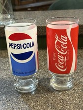 Vintage 2-PEPSI-COLA & COCA COLA 12 oz. Footed Glass Tumblers Great Condition