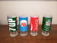 Vintage Set Of 4 6.5” Footed 16 oz Tumbler Glasses 7Up Coca-Cola RC Ginger Ale