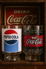 Vintage Pepsi-Cola & Coca-Cola COKE 12 oz Glasses c1970s