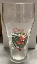 1996 COCA COLA CHRISTMAS SANTA CLAUS GLASS WITH TRAIN & TOYS