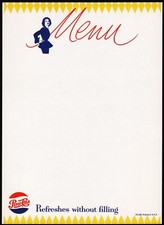 Vintage menu PEPSI COLA woman pictured Refreshes Without Filling unused n-mint+