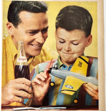 Dad Son Toy Airplane Pepsi Vintage 1962 Magazine Print Ad Glass Bottle Soda