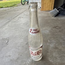 Pepsi Vintage Clear Glass Bottle Embossed '2 Full Glasses' Soda Advertising