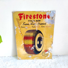 Vintage Tin Sign Firestone Tyres Tubes Advertising Auto Shop Garage Collectible