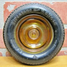 FIRESTONE BALLOON TIRE Old Advertising Ashtray Tray Sign AMBER Glass HUBCAP