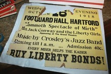 1918 Antique Poster Footguard Hall Hartford Connecticut Concert Dance 14" x 10"
