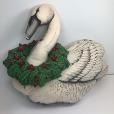 Vintage Wild Swan Plush Pillow with Christmas Beaded Wreath 16" x 14"