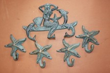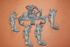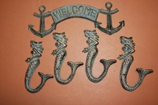 (5) Antique-look Maritime Welcome Plaque Mermaid Wall Hook Cast Iron Set 5 pcs