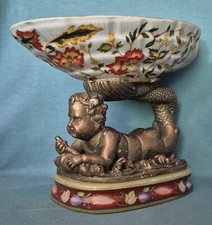 ANTIQUE STYLE HTF 7-1/4" HUNG HEI MERMAID / MERBOY TRINKET DISH NEAR MINT MARKED