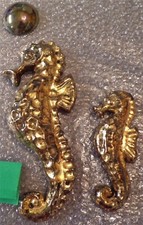 #20-517, Handmade Antique Gold over Black 2 pc Seahorse set. Mark SR, 1960