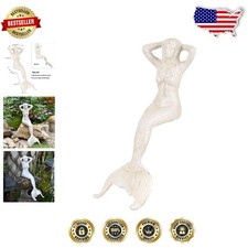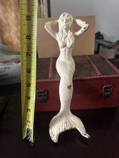 Large Cast Iron Mermaid Statue 14.3" Tall Antique White Garden Decor