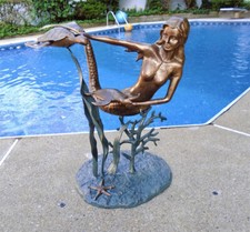 Antique Bronze Patina Mermaid Sculptures Siren Statues Nautical Pool Pond Decor