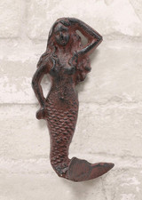 6"Tall Nautical Siren Mermaid Cast Iron Rustic Vintage Finish Wall Coat Hook Oce