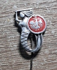 Antique Pin BROOCH Pin Mermaid Woman Sword Shield Badge Button Poland Warszawa O
