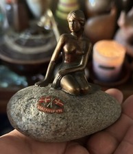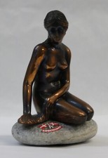 Vintage DENMARK KOBENHAVN Copper Bronze Nude Mermaid on Stone Figurine