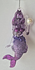 Vintage Plastic/Acrylic Purple “Mermaid With Pearl” Ornament Glitter