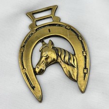 Brass Horse Medallion Antique Colt Filly Pony Horseshoe Double Hanger Harness