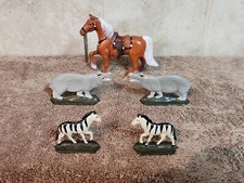 Vintage 1950’s Cast Metal Painted Toy Horse Made In Japan Plus 4 Metal Animals