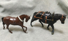 Vintage Metal Horse Toy Figure England - Lot Of 2 - Brown - Black Proprietors