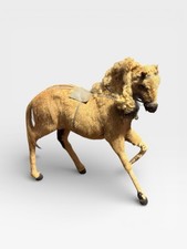 Large Vintage Mohair Palomino Toy Horse w Leather Bridle Mid Century