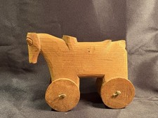 SCULPTURE - Vintage Primitive Toy Wood Horse 12.5x10x5.25 Trojan Horse VTG Toy
