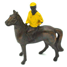 Vintage Metal Bronze Racing Horse Jockey Figurine Americana Japan Old Toy 3"