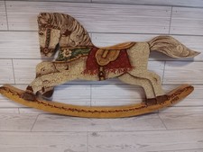 Vintage Wooden Rocking Horse Hand Carved & Painted Toy Figure Moveable