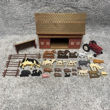 Vintage Handmade Wooden Toy Barn W/ Plastic Farm Animals Primitive Folk Art MCM