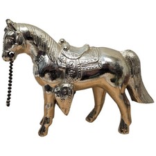 Vintage Metal Gold Finish Western Style Horse Figurine Toy w/ Chain 1950s USA