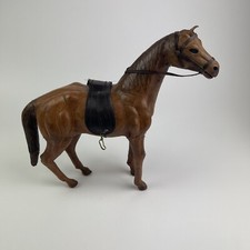 Vintage Western Toy Statue Leather Horse Figurine Saddle Stirrup W Glass Eyes