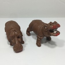 Lot of 2 Vtg Hong Kong Plastic Toy Play Animal Figures Hippo Hippopotamus Zoo