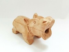 Wood Hand Carved Hippopotamus Figurine Hippo Sound Toy Decor Vintage Brown 5"