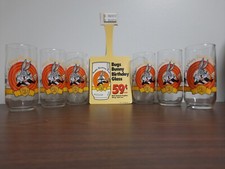 Advertising sign w/ set of 6 Happy 50th Birthday Bugs Bunny cartoon glasses 1990