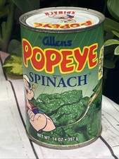 Vintage 1998 Popeye Spinach Can 14oz Allens Cartoon Advertising Unopened EXPIRED