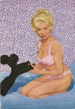 Original Vintage Semi Nude French Pinup Card- Blond- Toy Dog Poodle- 1950s-60s