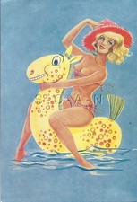 Original Vintage 50s-70s Large (5.5 x 8) Semi Nude Artist Drawn Pinup- Water Toy
