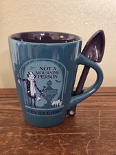 Disney Parks HAUNTED MANSION MUG w/Spoon 'NOT A MOURNING PERSON URN YOUR REST'