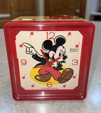 ILLCO Disney Mickey Mouse Works Wind Up Musical Radio Clock Toy Vintage 1970's
