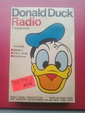 Vintage Donald Duck Transistor Radio In It’s Original Box w original 9 volt, REA
