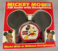 Vintage Walt Disney Mickey Mouse AM Radio With Headphones WD1005 Hong Kong Works