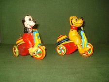 Vintage Mickey Mouse and Pluto Tricycle Linemar Tin Toys - Works, PARTS