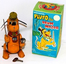EX! DISNEY 1950s "PLUTO THE DRUM MAJOR" TIN WIND-UP TOY-WORKING+HORN SOUND👍