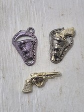 Lot 2 Vtg Plastic Vending Machine Gumball Toy Charm Pistol Six Shooter & Holster