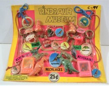 Vintage Dinosaur Rings Charms Toy Prizes Old Gumball Vend Machine Disp Card #244