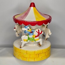 Vintage Disney Schmid Music Box Donald Duck on Carousel Horse Figurine Toyland T